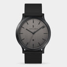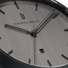 • Design sovrano: Il quadrante grigio scuro, le lancette e gli indici applicati in nero opaco, la cassa e il cinturino intercambiabile nella stessa tonalità: La Huxley Shadow affascina con toni scuri e tranquilli.