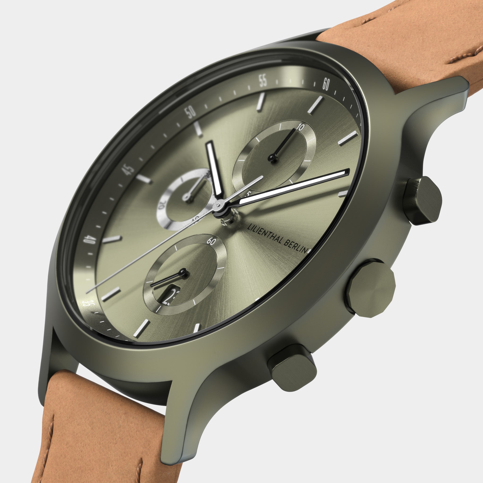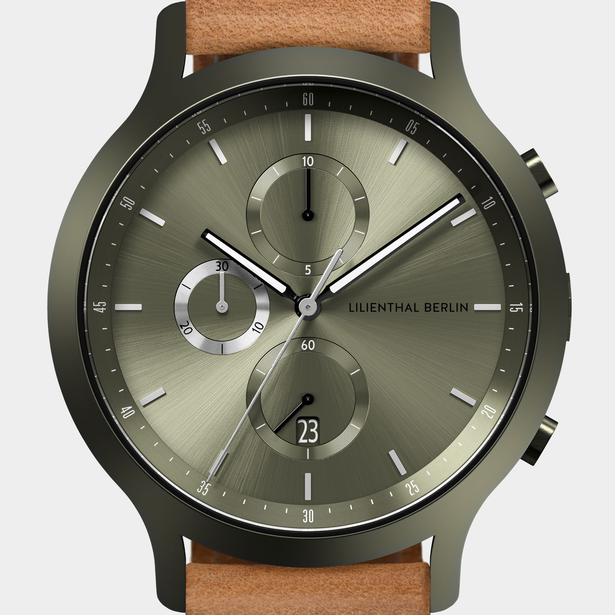 • Fresco y no convencional: El dial Sunburst brillante ha sido embellecido con detalles de Superluminova. La caja mate y la correa intercambiable hacen de este cronógrafo verde oscuro una pieza realmente llamativa.