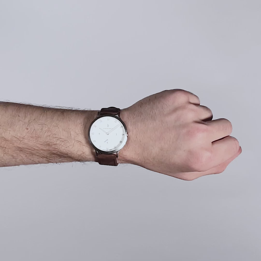 La claridad del Bauhaus, convertida en accesorio: segundero pequeño, corona insertada y un perfil fino que transmite precisión más que simple decoración. Es la alternativa discreta al estilo más tradicional: tranquilo y moderno.